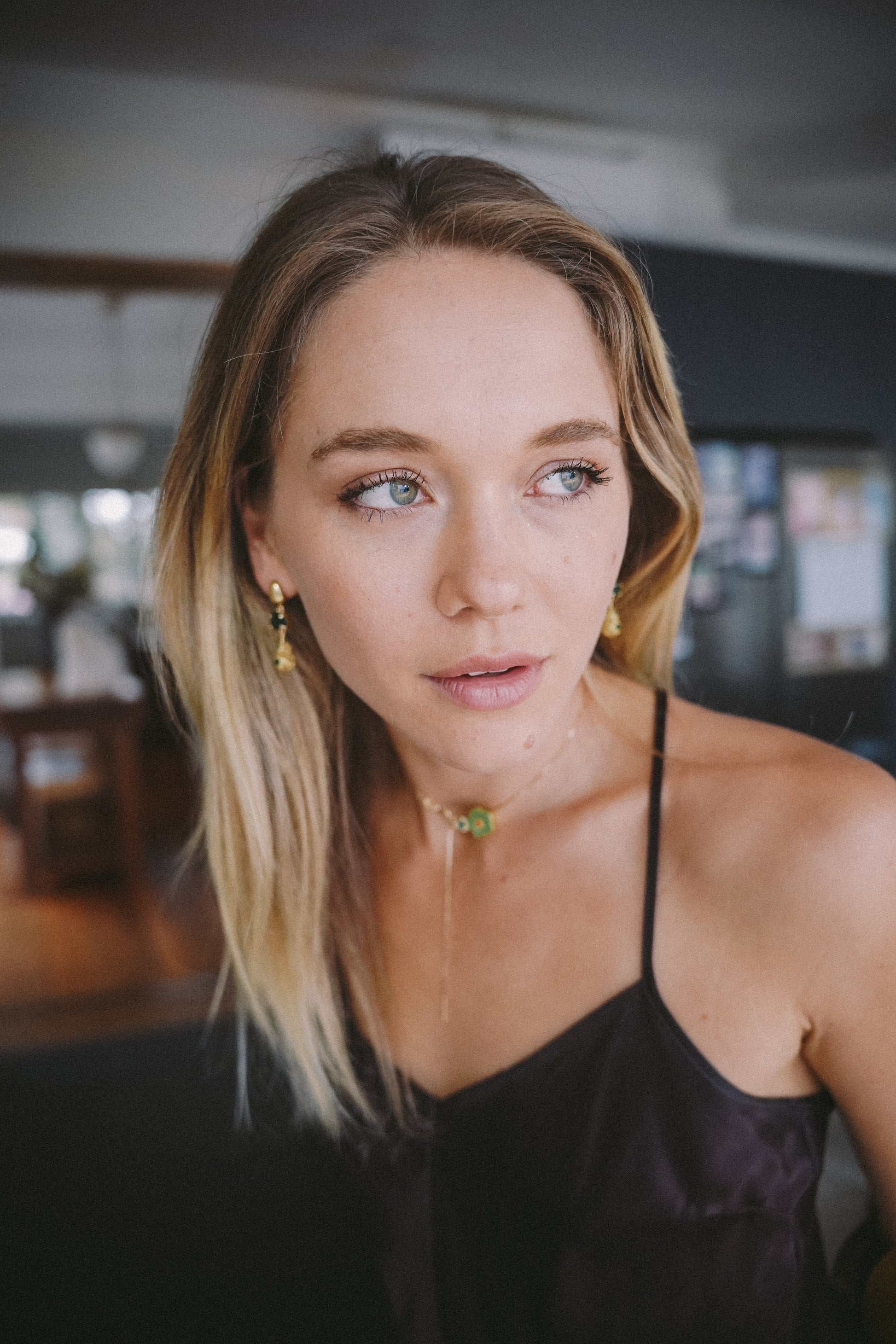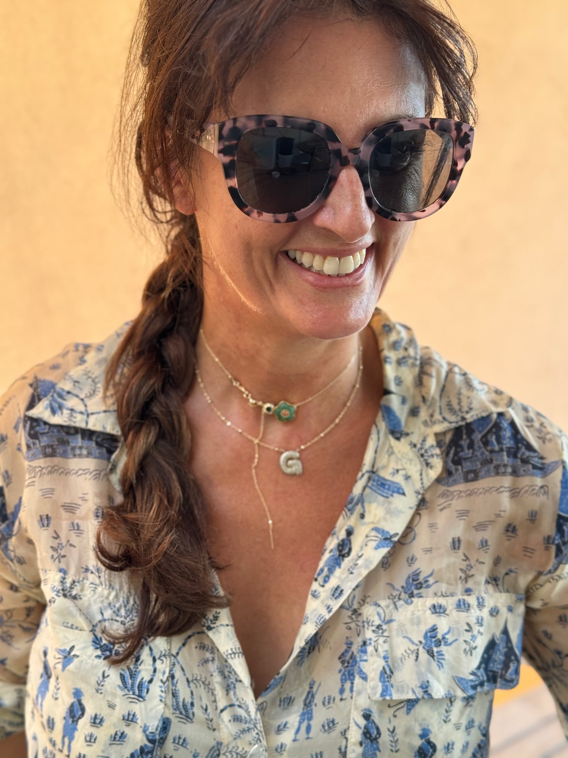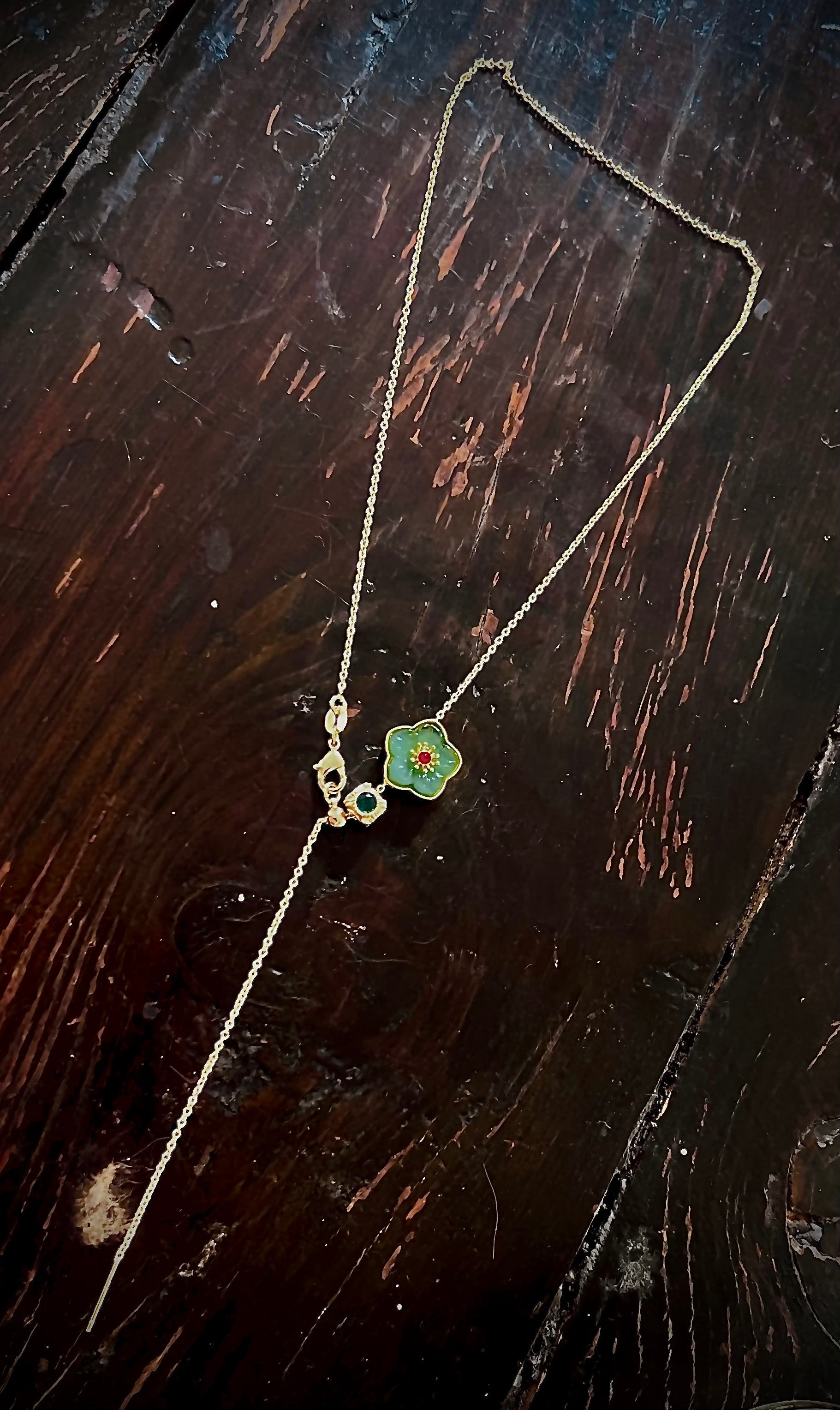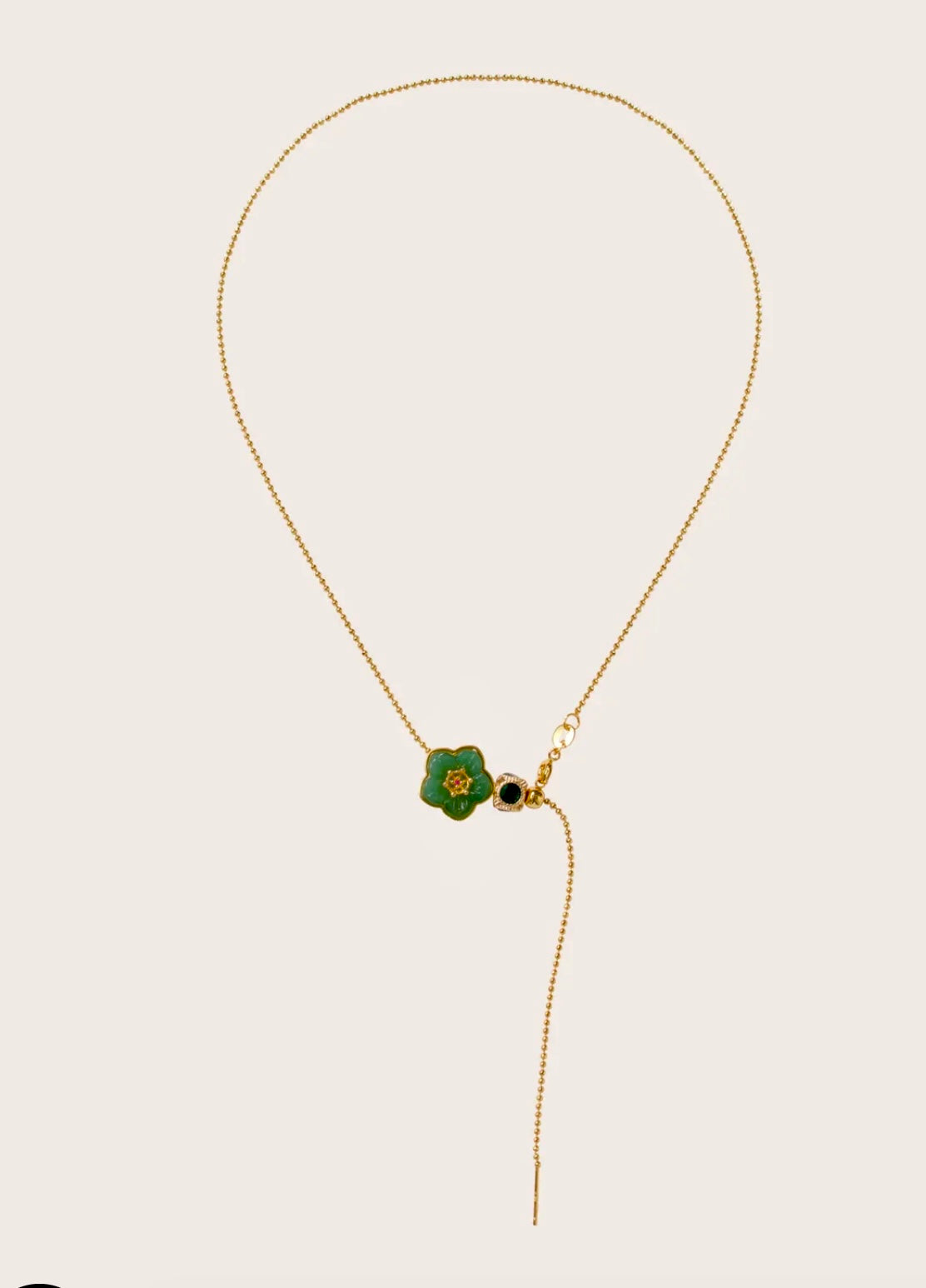 18k gold plated adjustable chain with emerald green zircon cube and resin flower