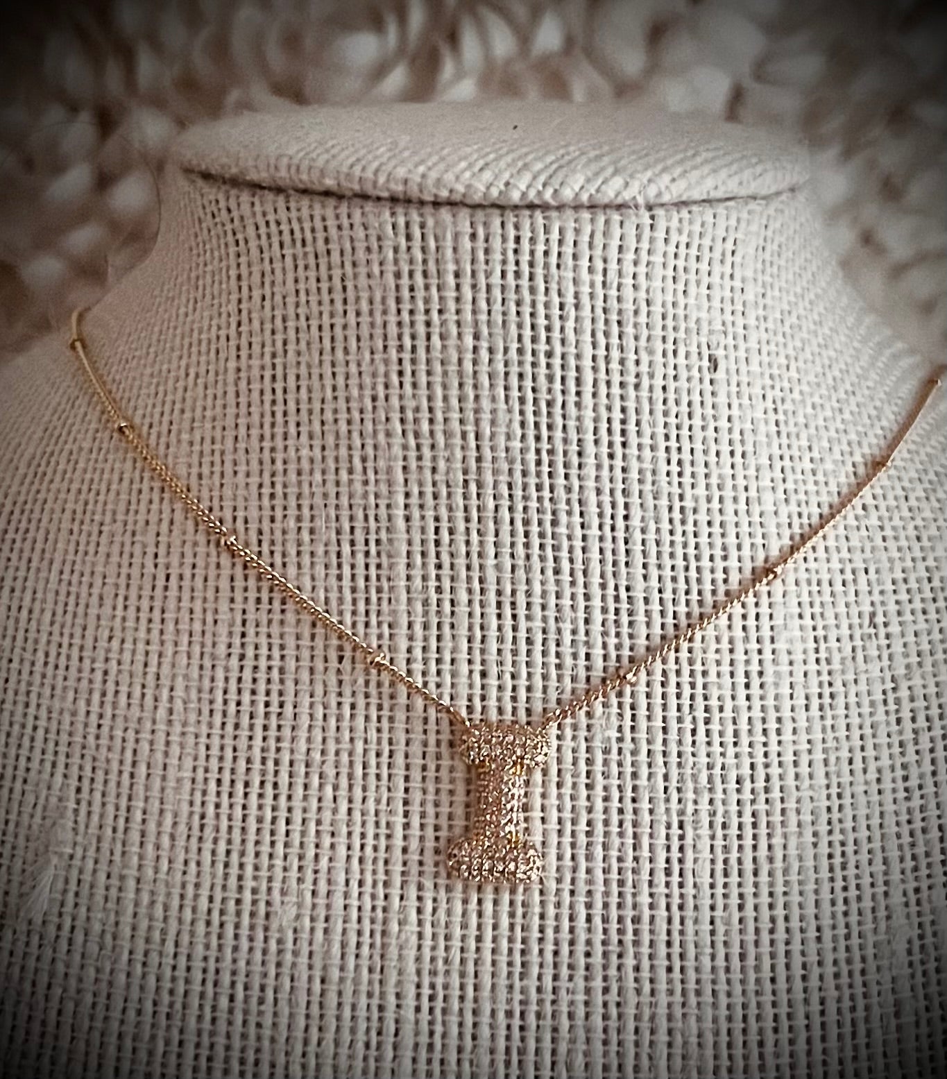18k Gold plated CZ pave Bubble Initial Pendant with 14k anti tarnish 16” satellite chain with 2” extender.