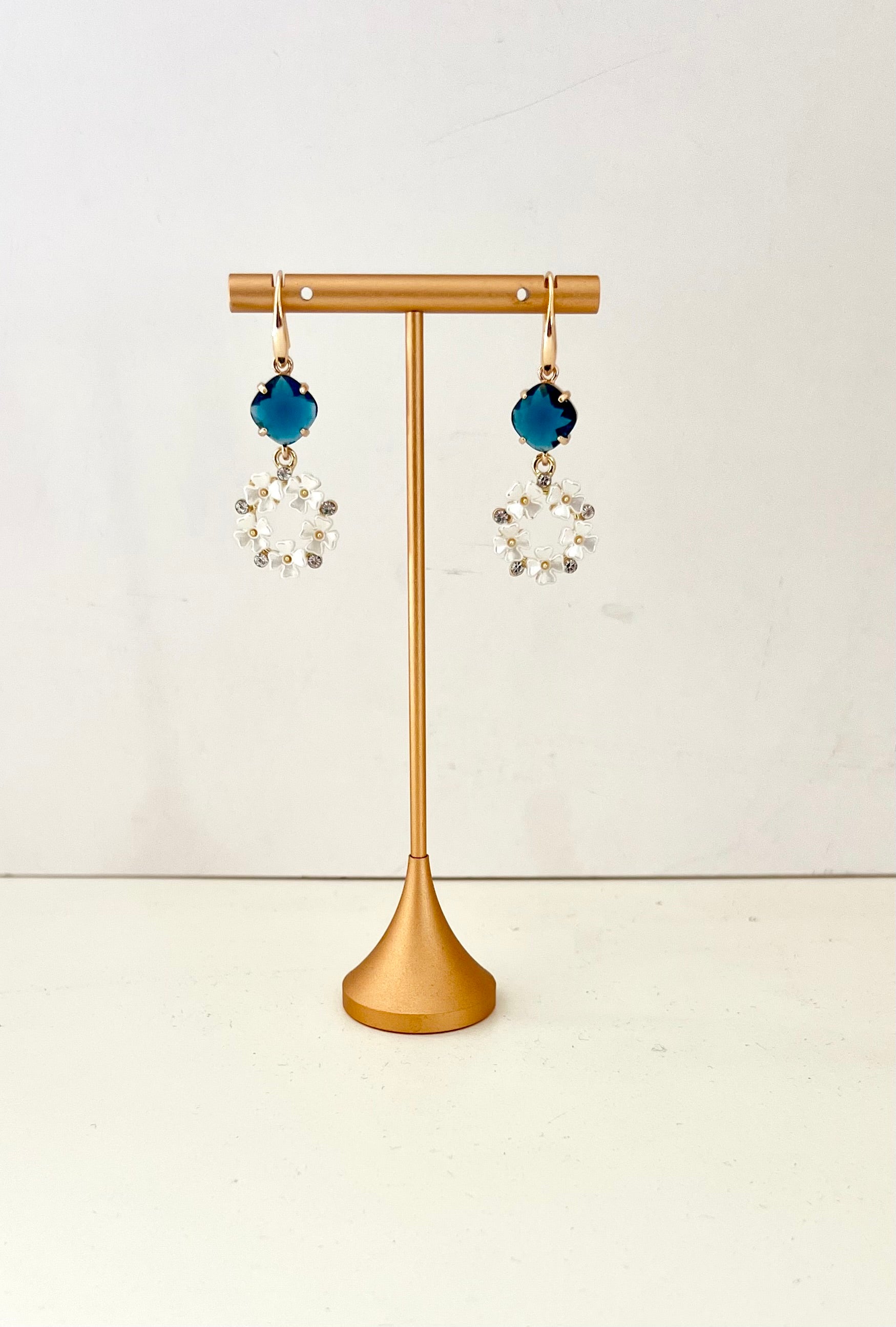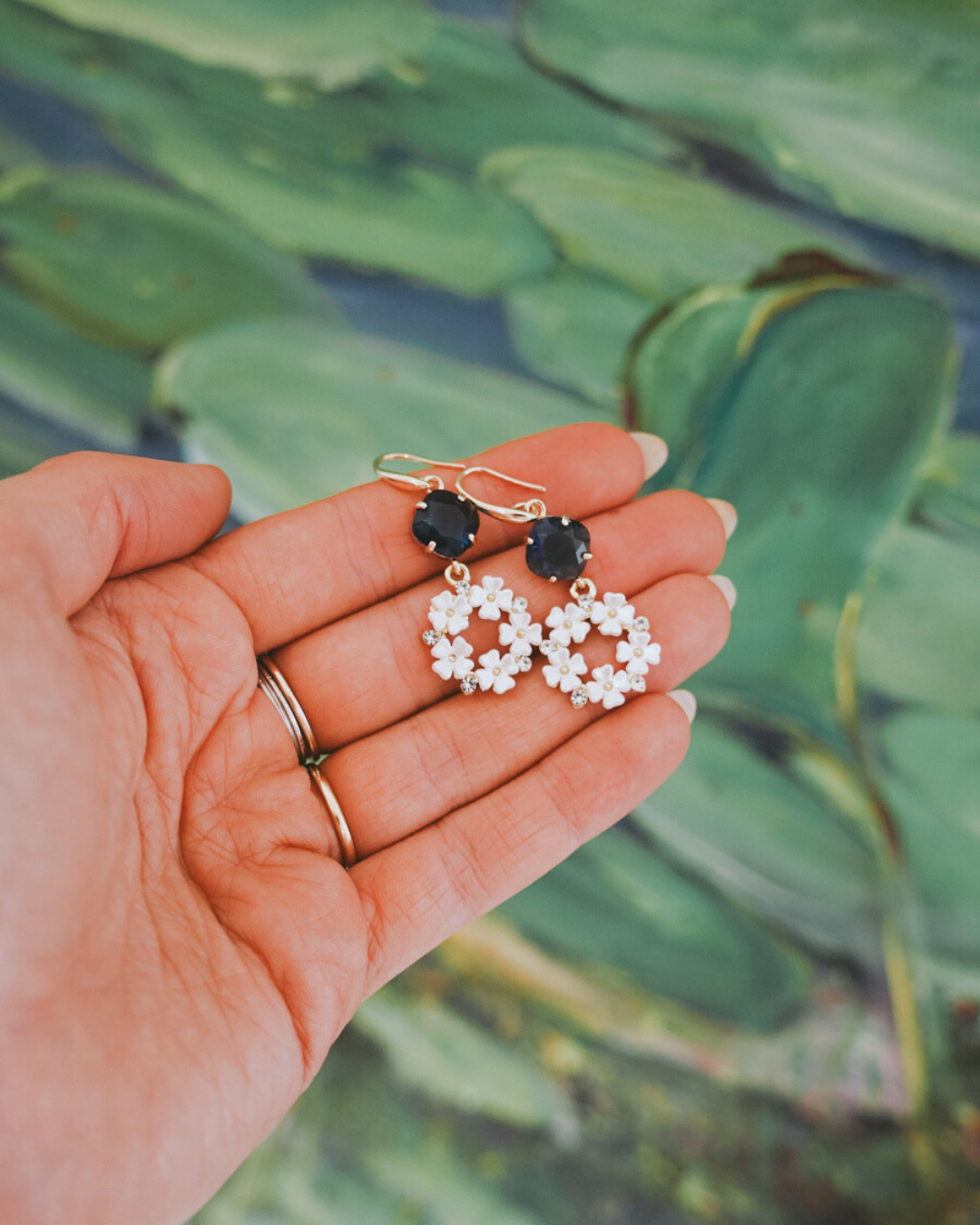 Navy blue cubic zirconia with resin and pave crystal flower wreath