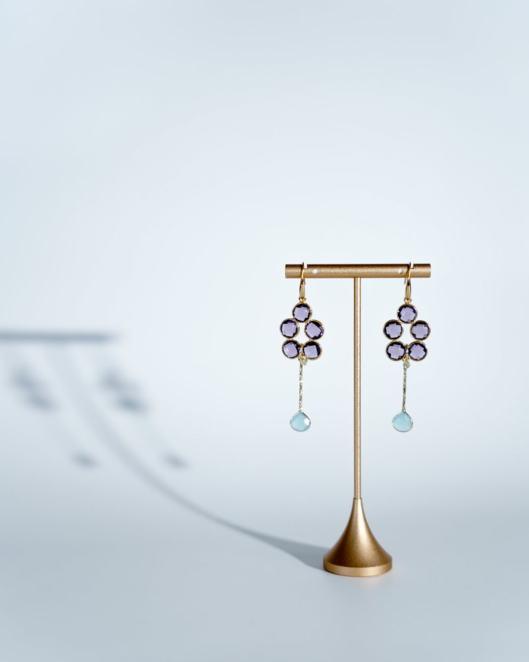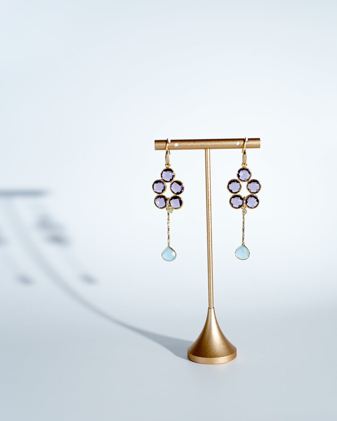 Lavender colour gem cluster with a blue bar gem