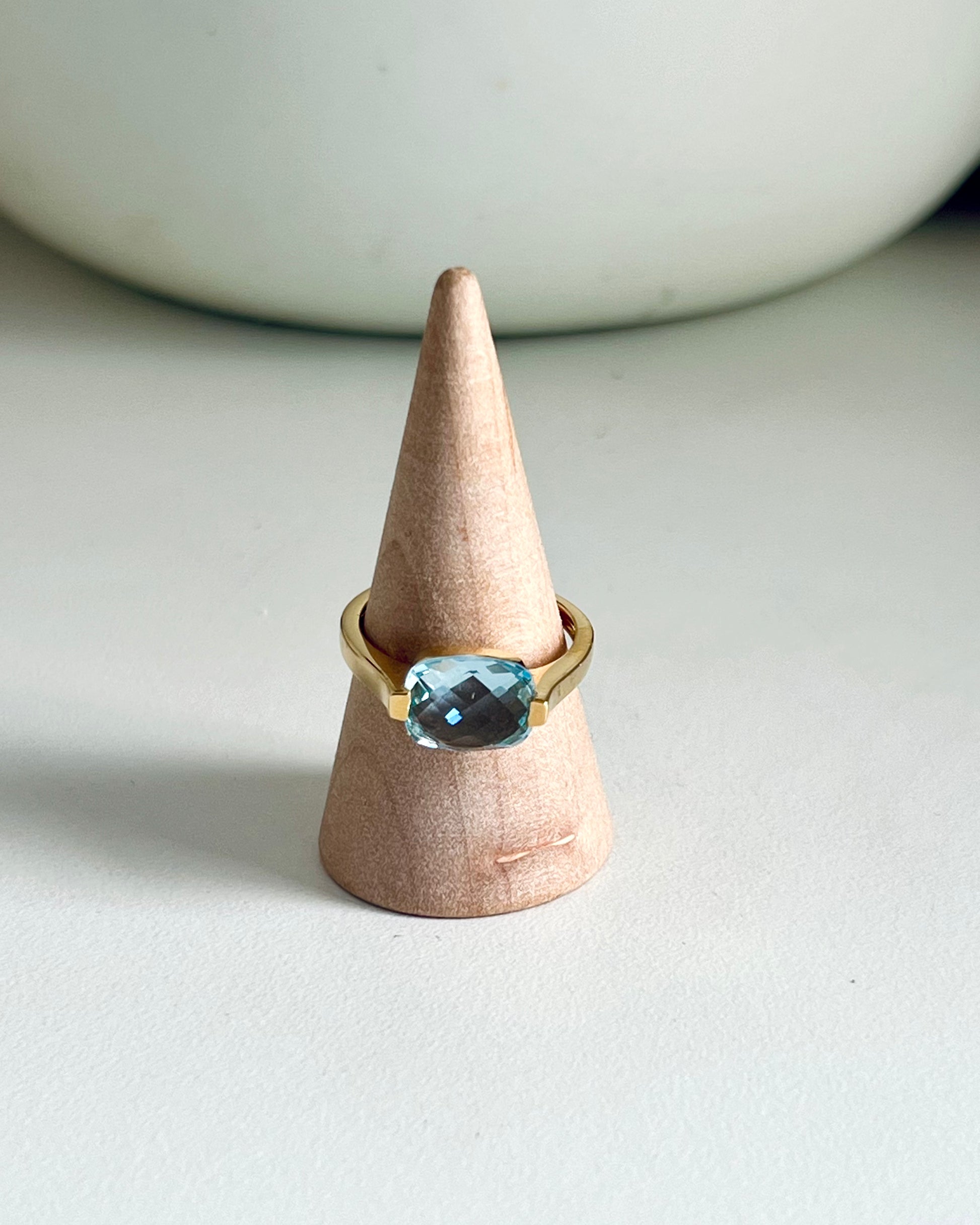 Bluer topaz rectangular stone with a 18k gold 1.5 micron (eco) plating adjustable band
