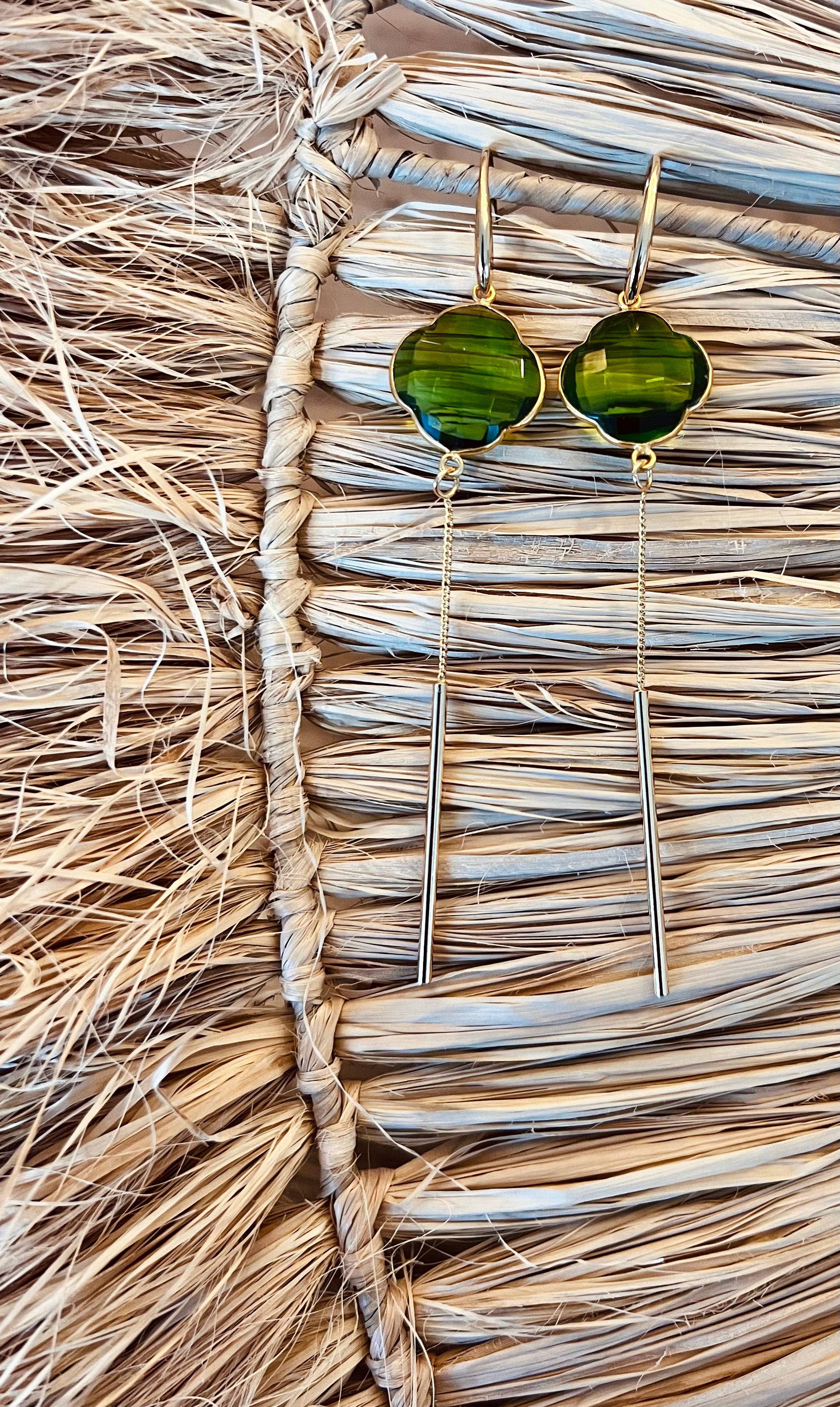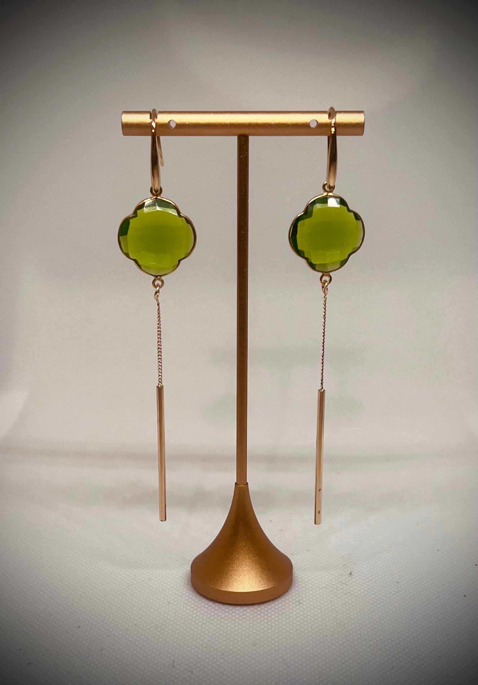 Green Amythest 20mm x 27mm clover with 70mm gold plated chain and bar
