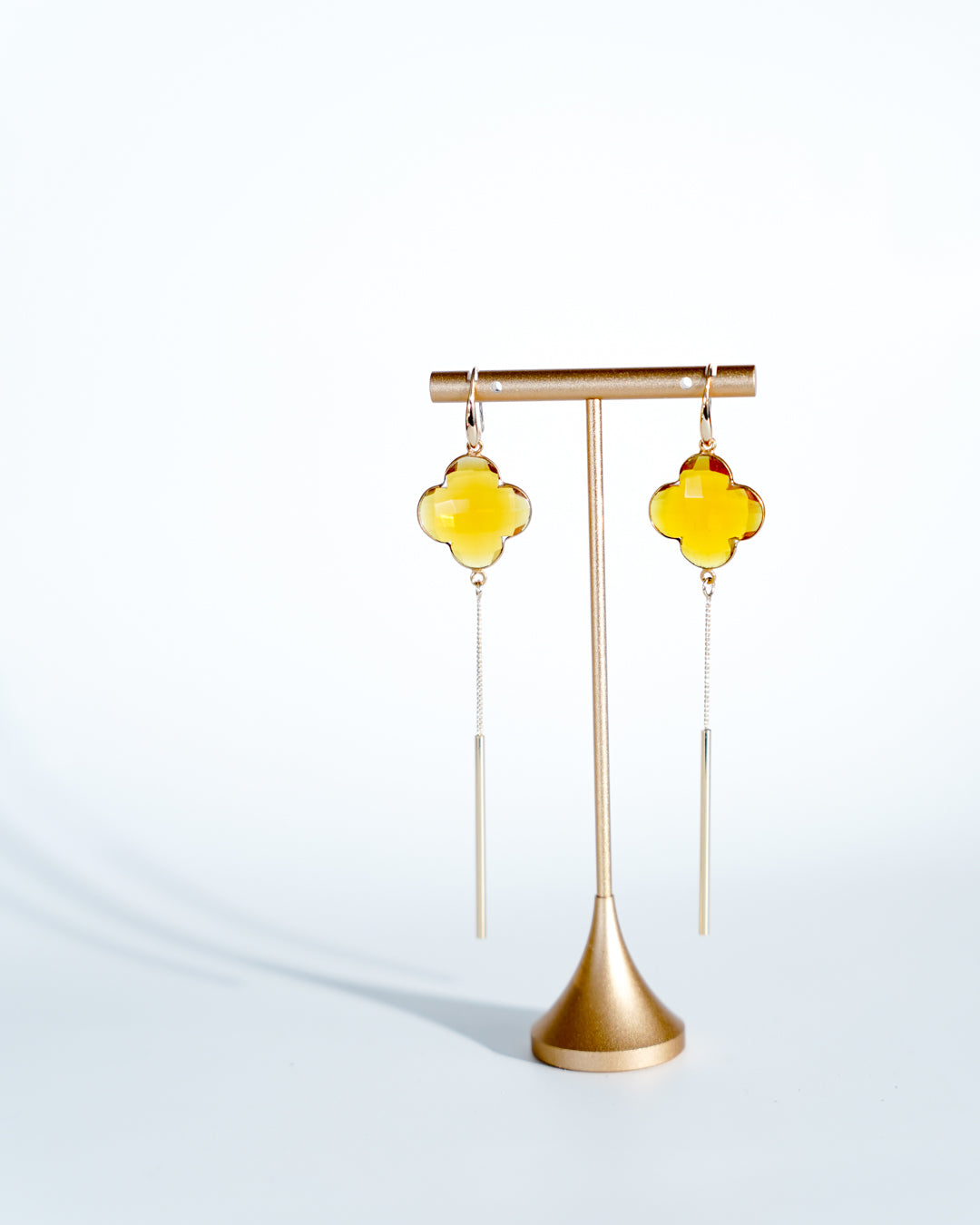 27mm x 20mm citrine clover with 70mm gold long chain and bar.