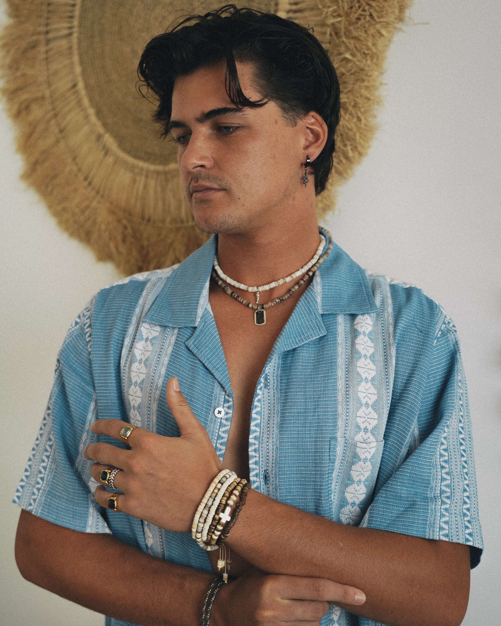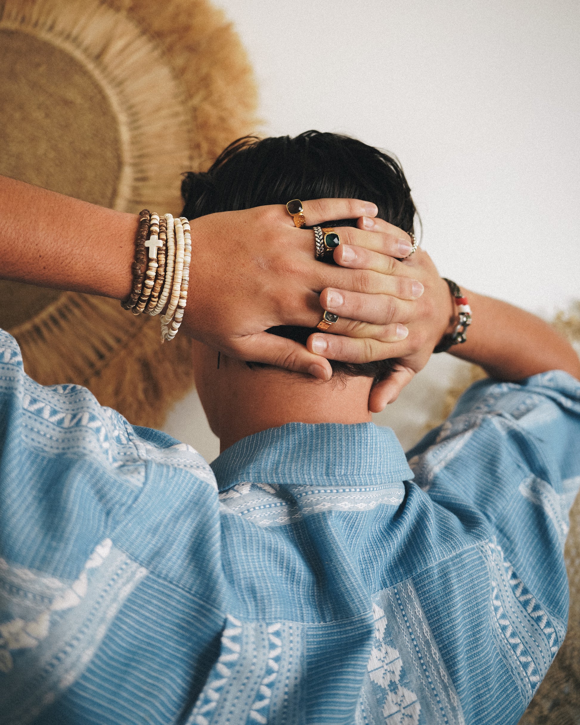 8.5 inch (larger wrist) coconut and wooden beaded bracelets with cord tie. Sold in sets of 2