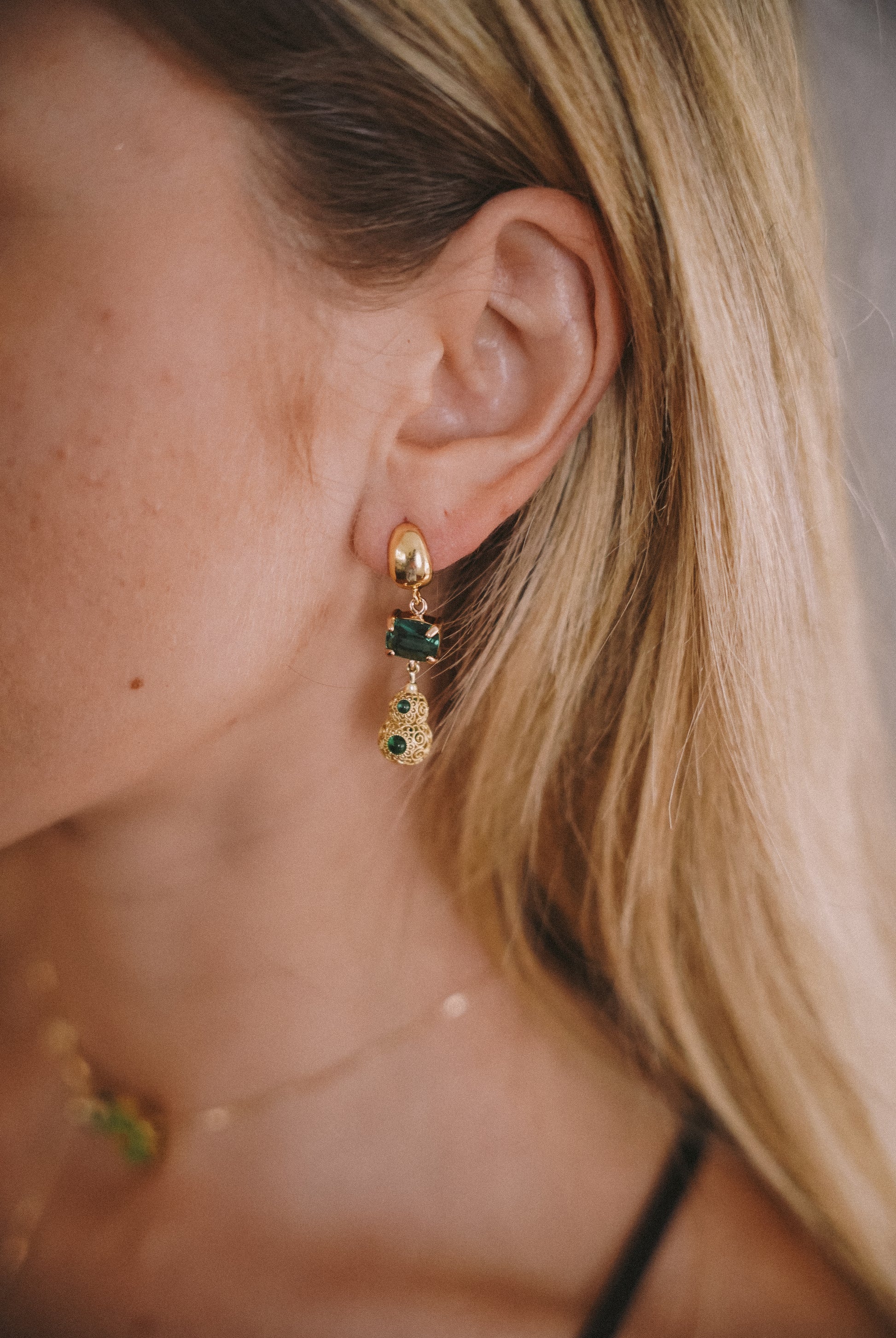 Emerald filigree earrings