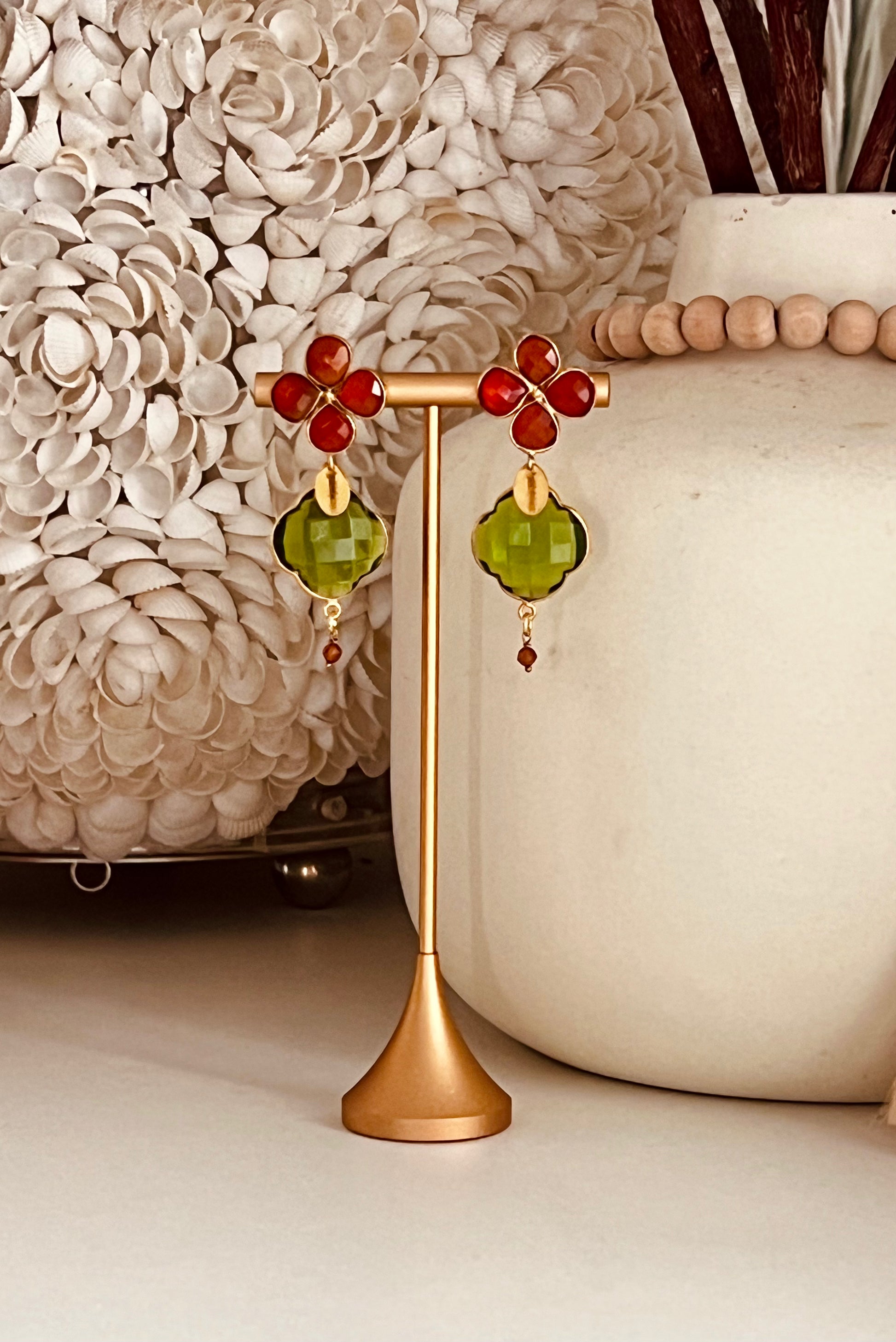 Carnelian Gemstone post with Green Amythest 20mm x 27mm clover and carnelian bead