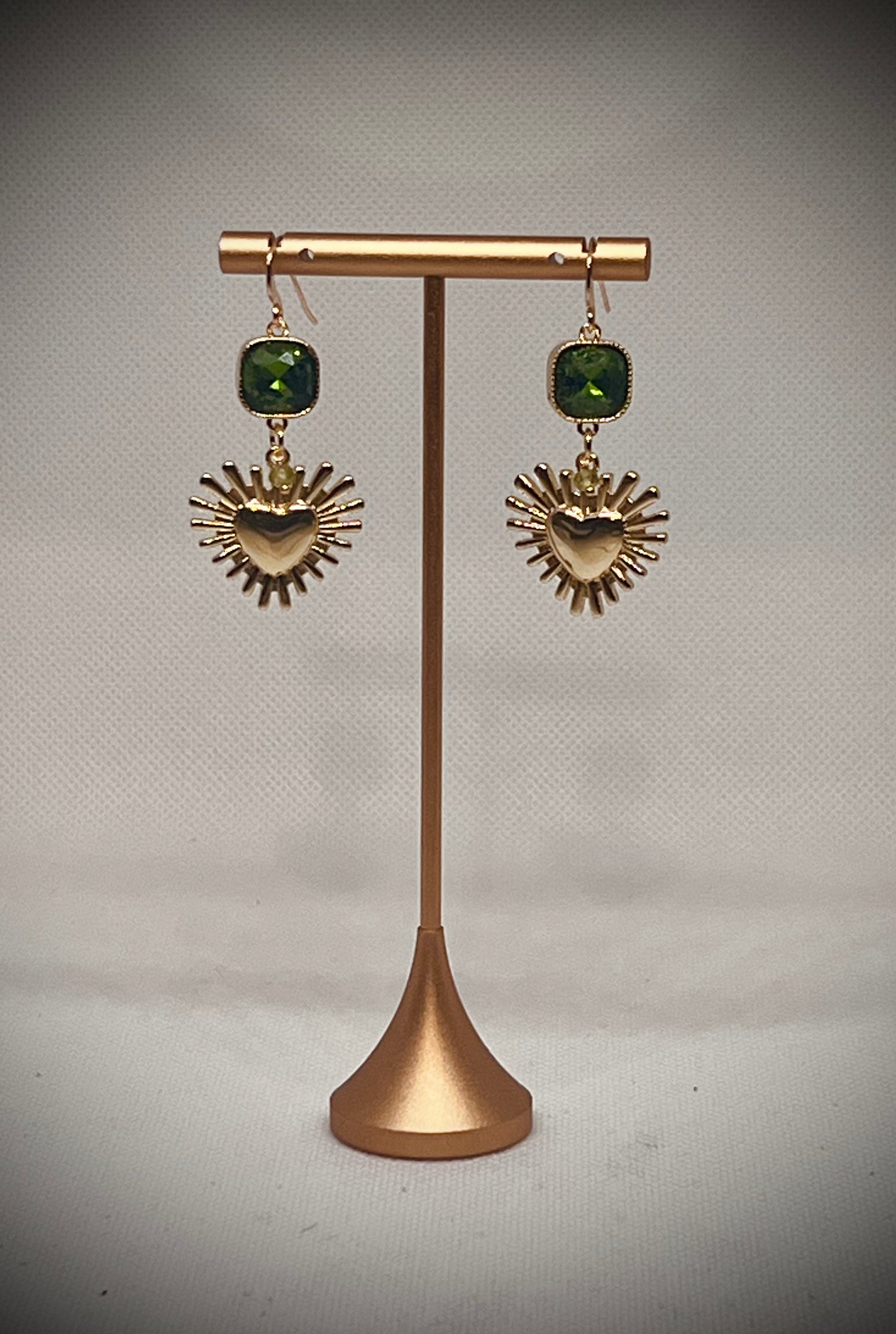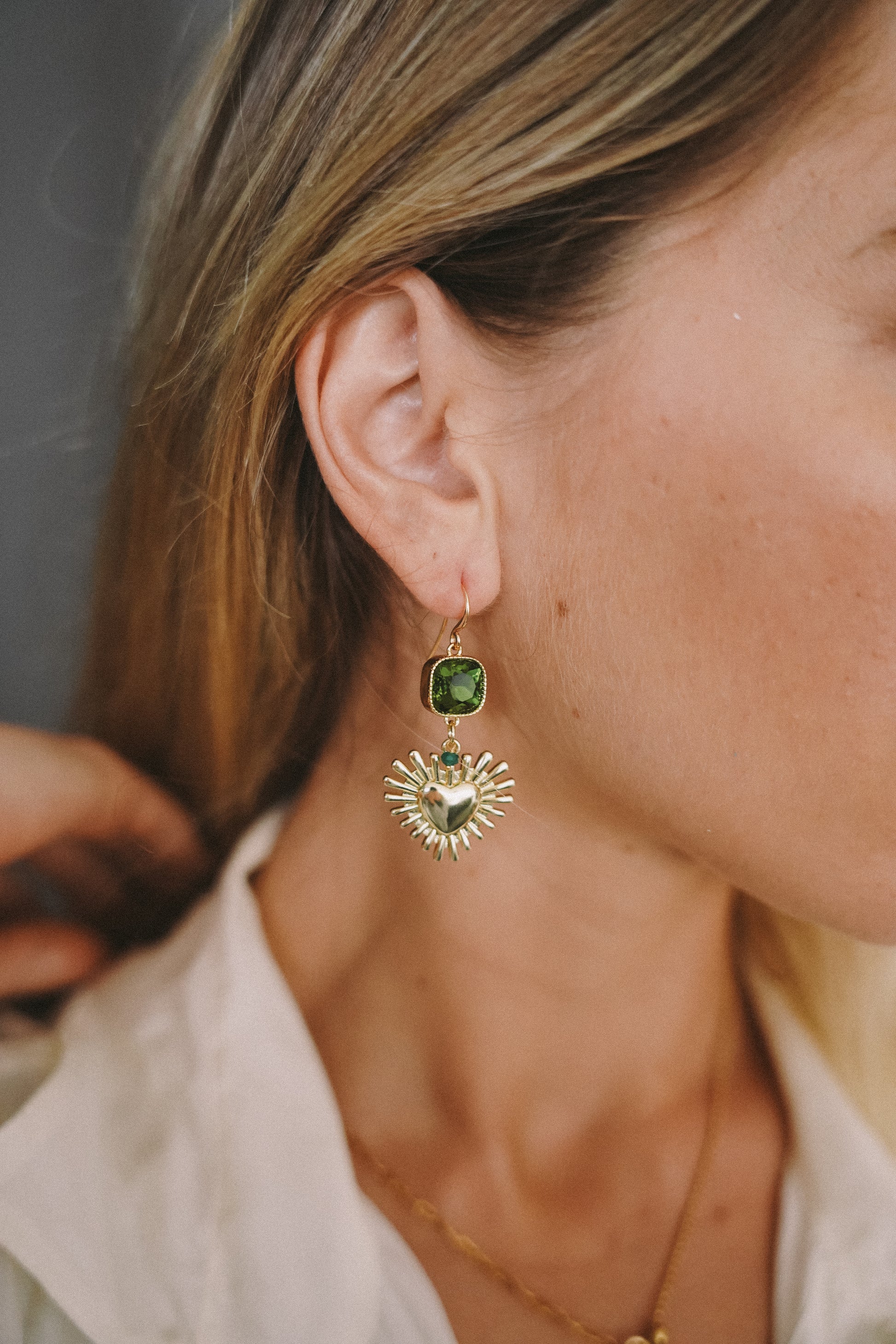 18k gold plated CZ pave green square connector (11.5x16x6.3mm) with 18k gold filled heart (27x25x3mm)