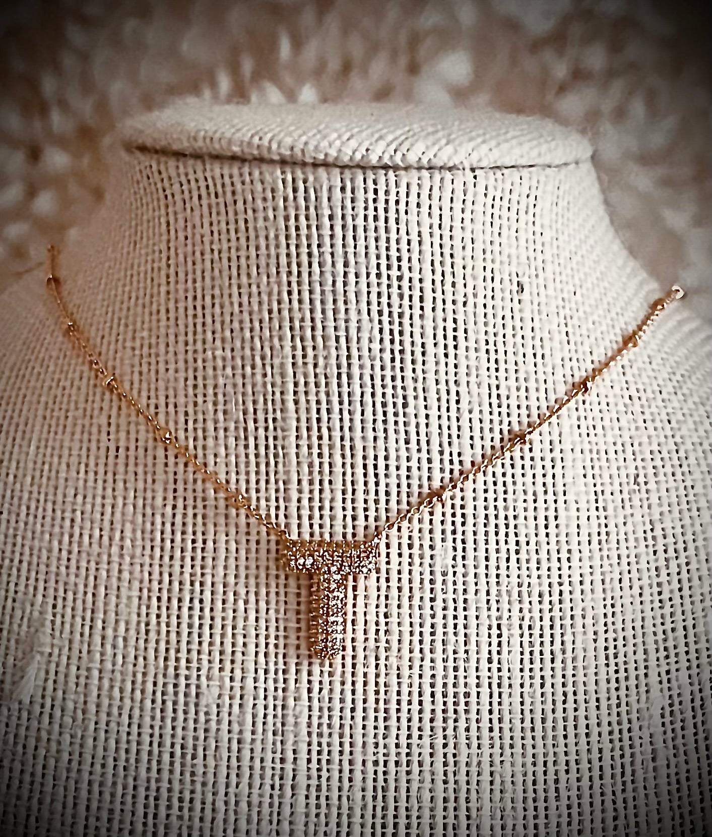 18k Gold plated CZ pave Bubble Initial Pendant with 14k anti tarnish 16” satellite chain with 2” extender.