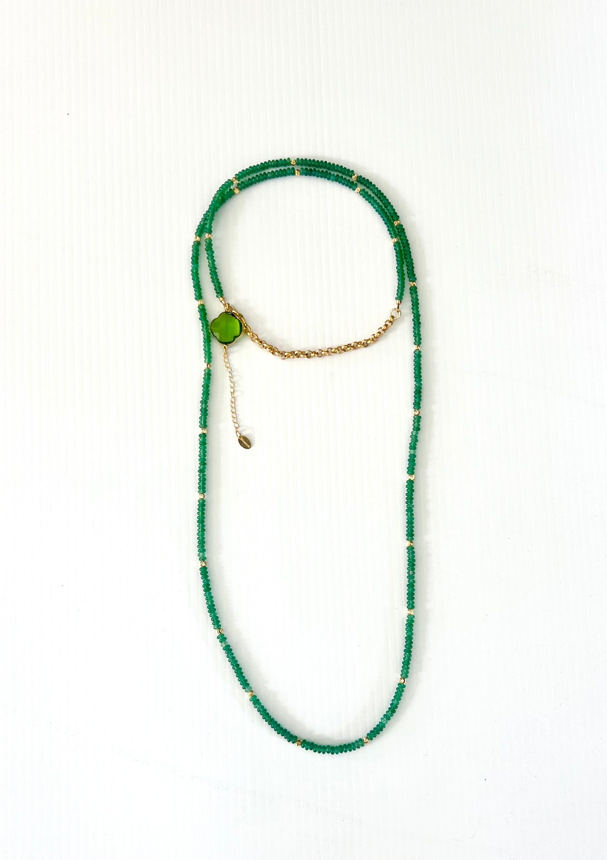 40 inch long aventurine beads with 18k gold plated chain and green amethyst clover