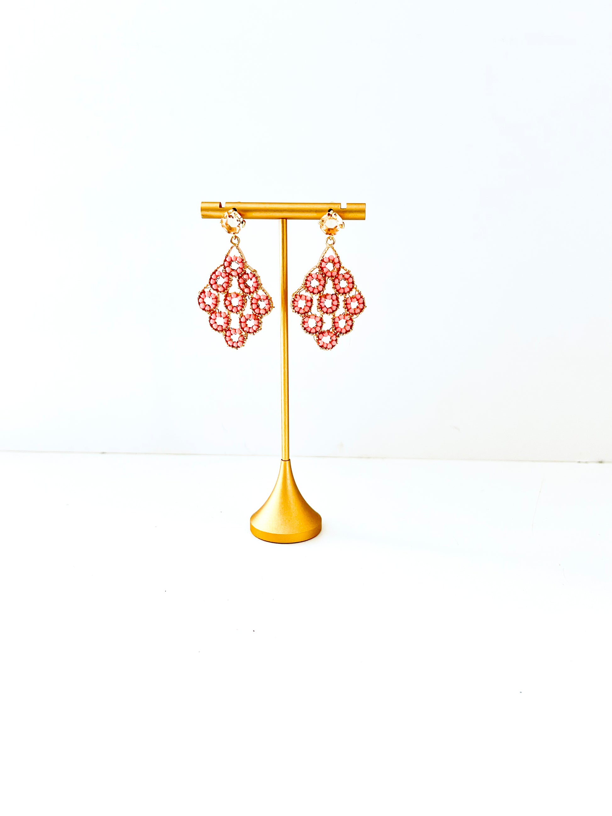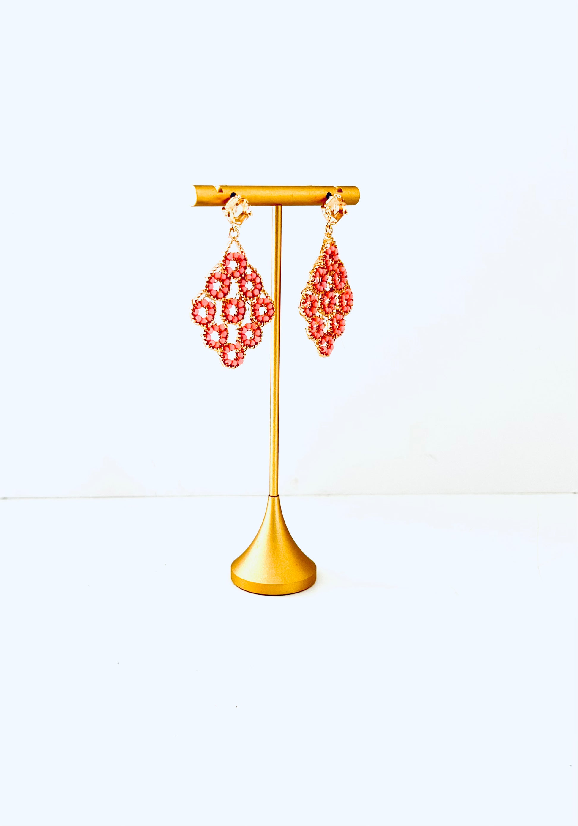 Pale peach cubic zirconia gem with dark coral colour beaded drop