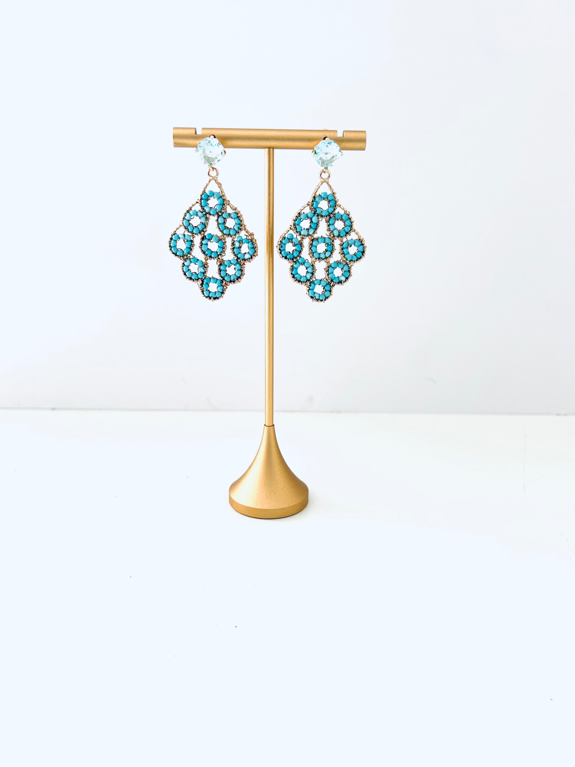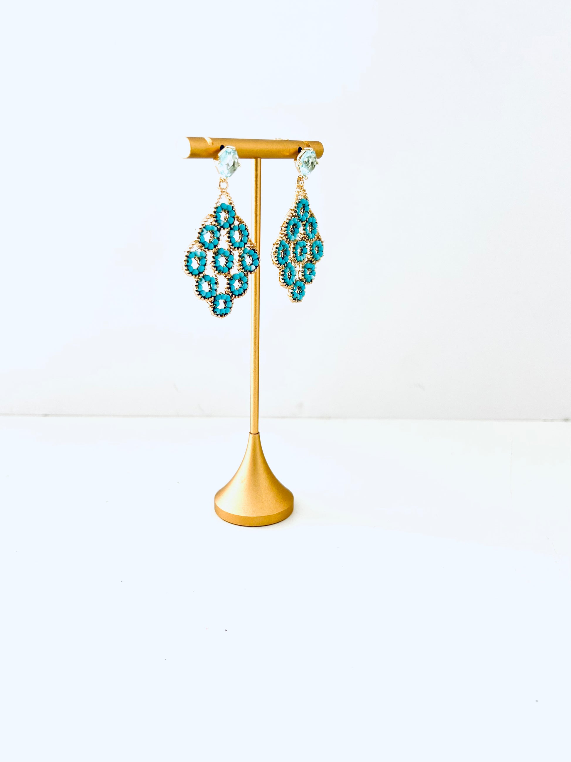 Pale blue cubic zirconia post with turquoise colour beaded drop