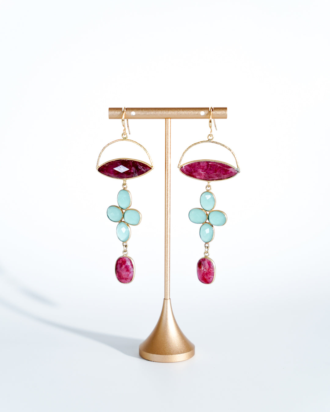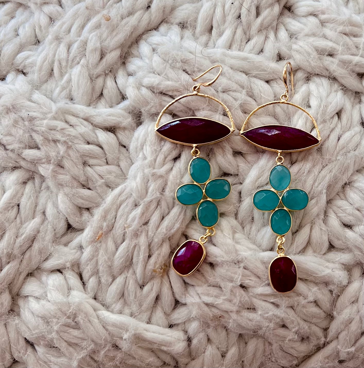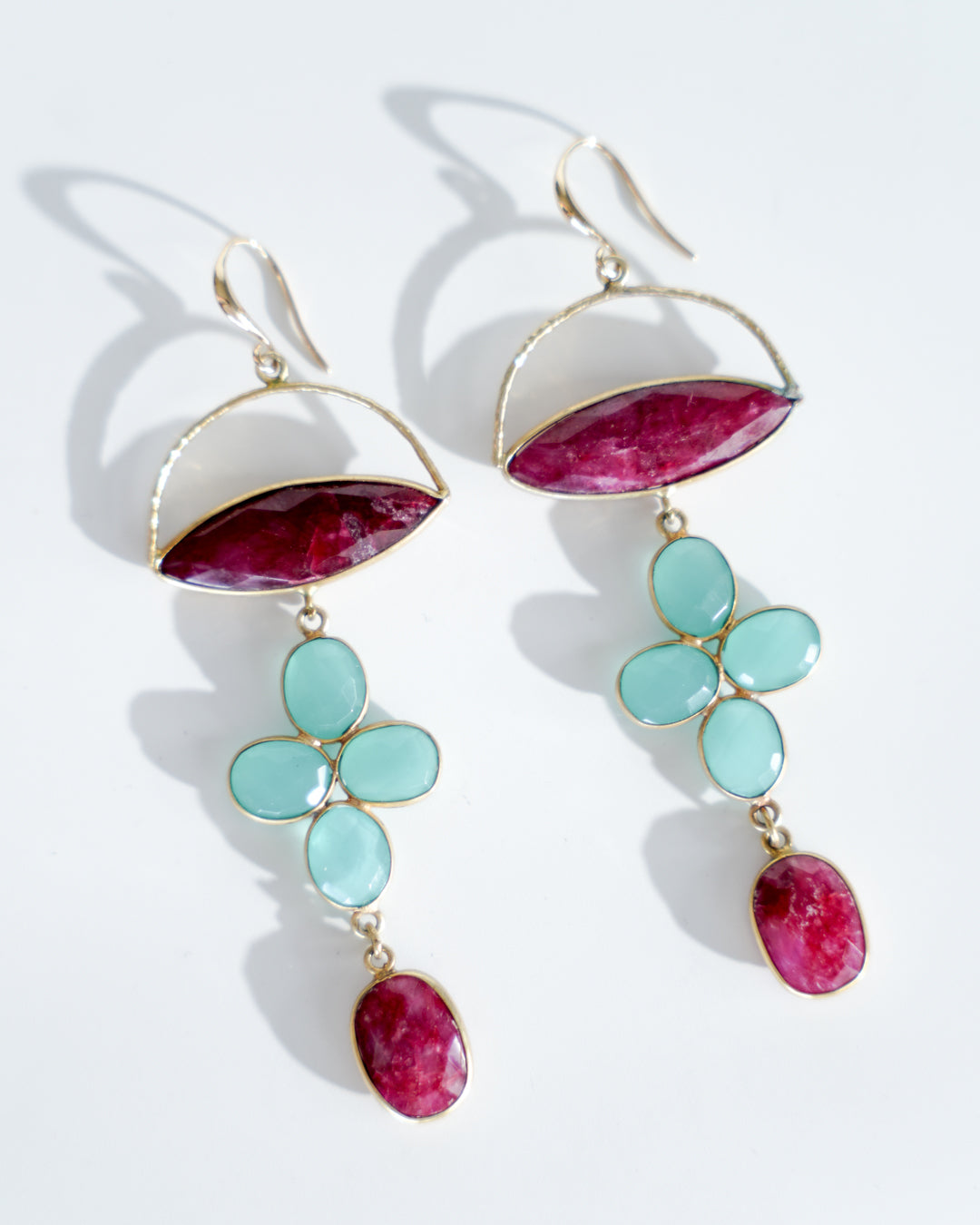 Natural ruby marquis top approx 3 cm in length with Aqua quartz and natural ruby drop approx 5.2 cm drop from bottom of ruby marquis.