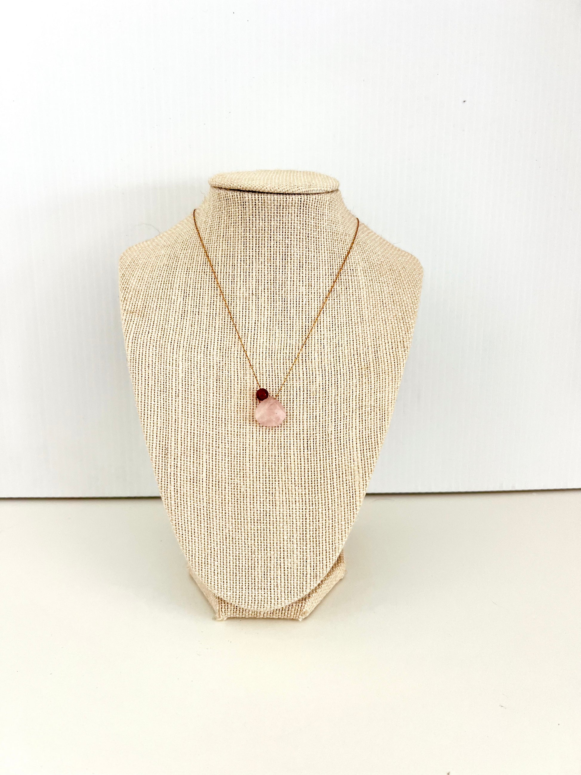 rose quartz faceted teardrop on 16 inch gold plated chain