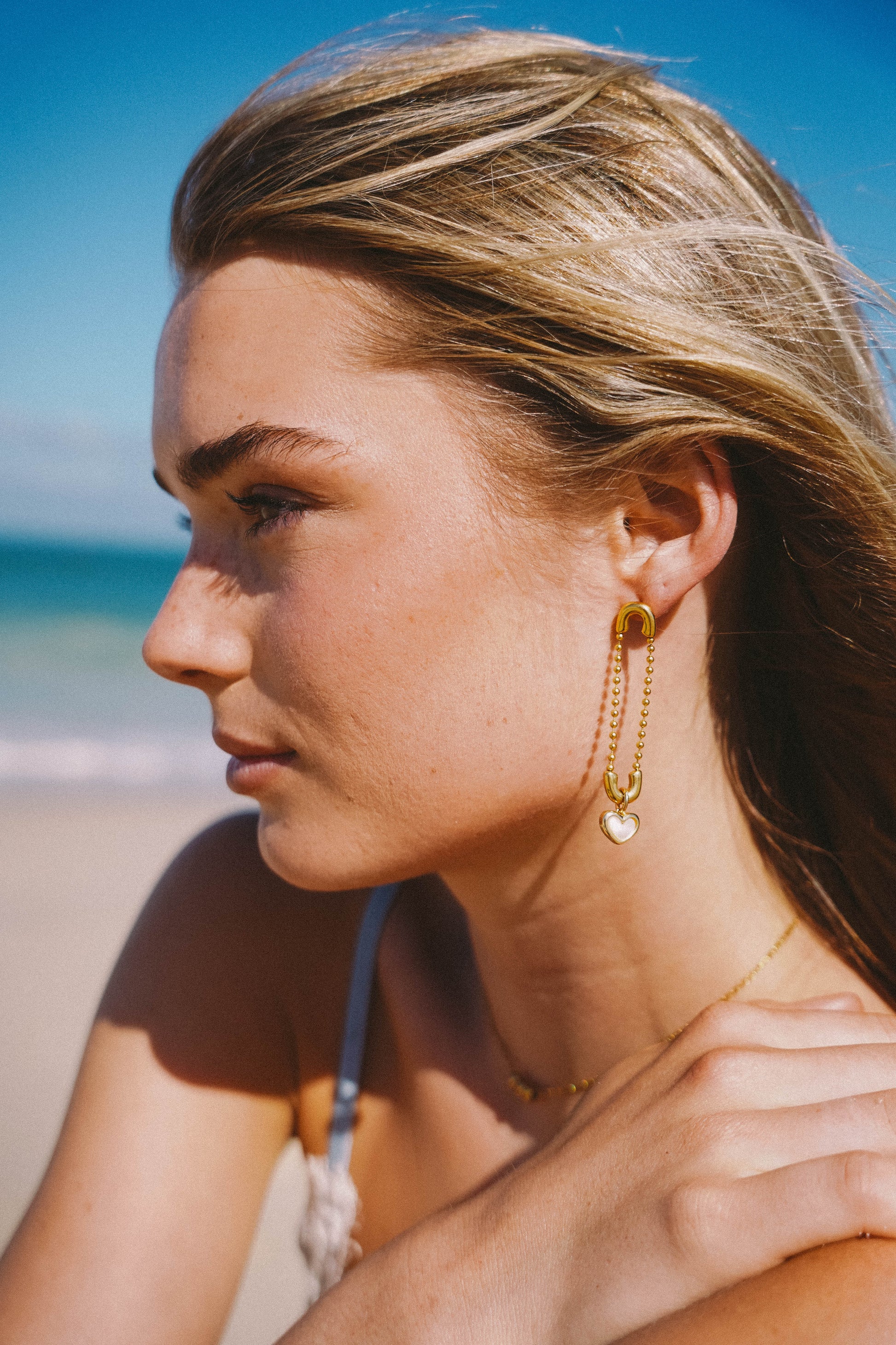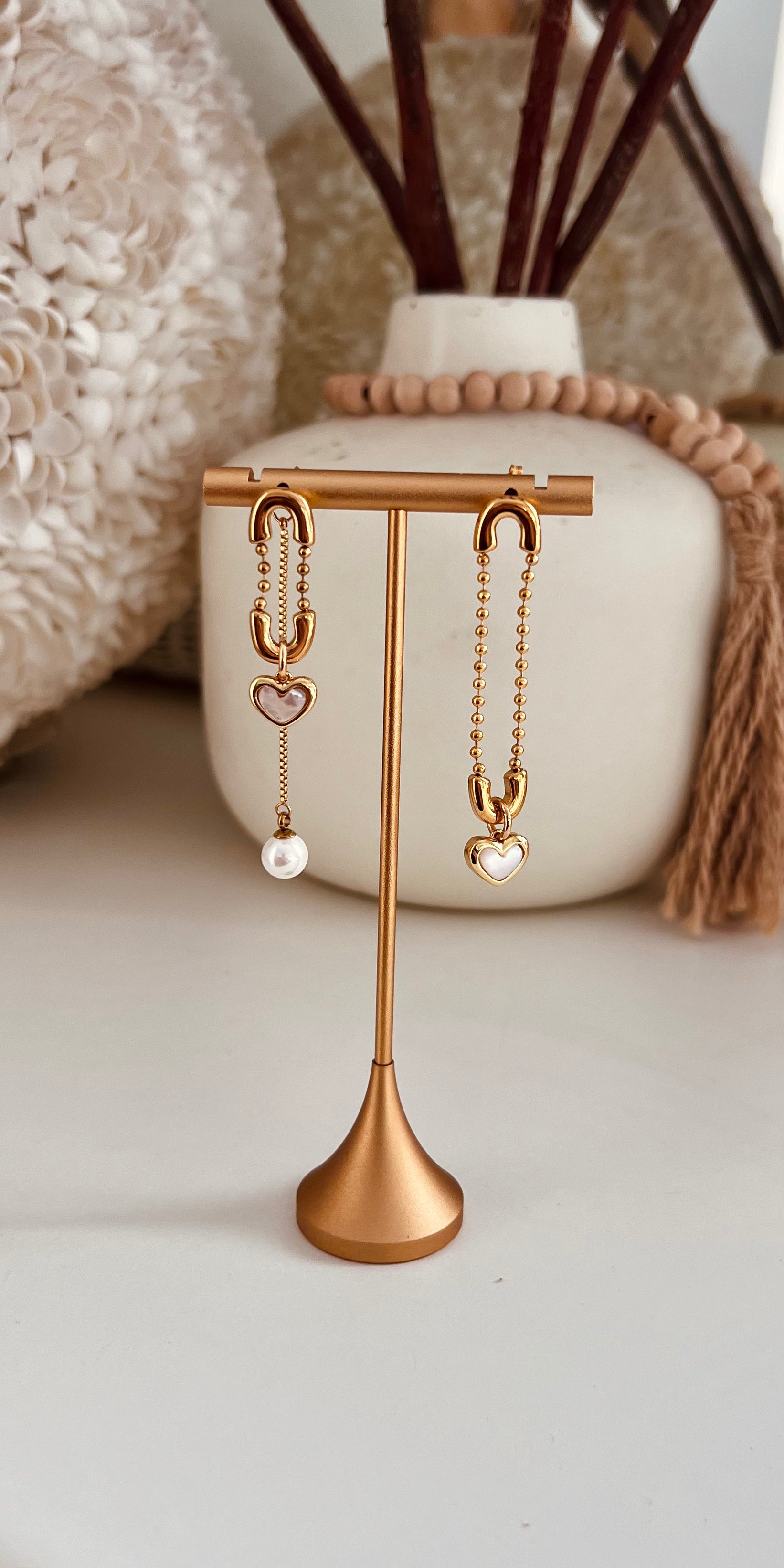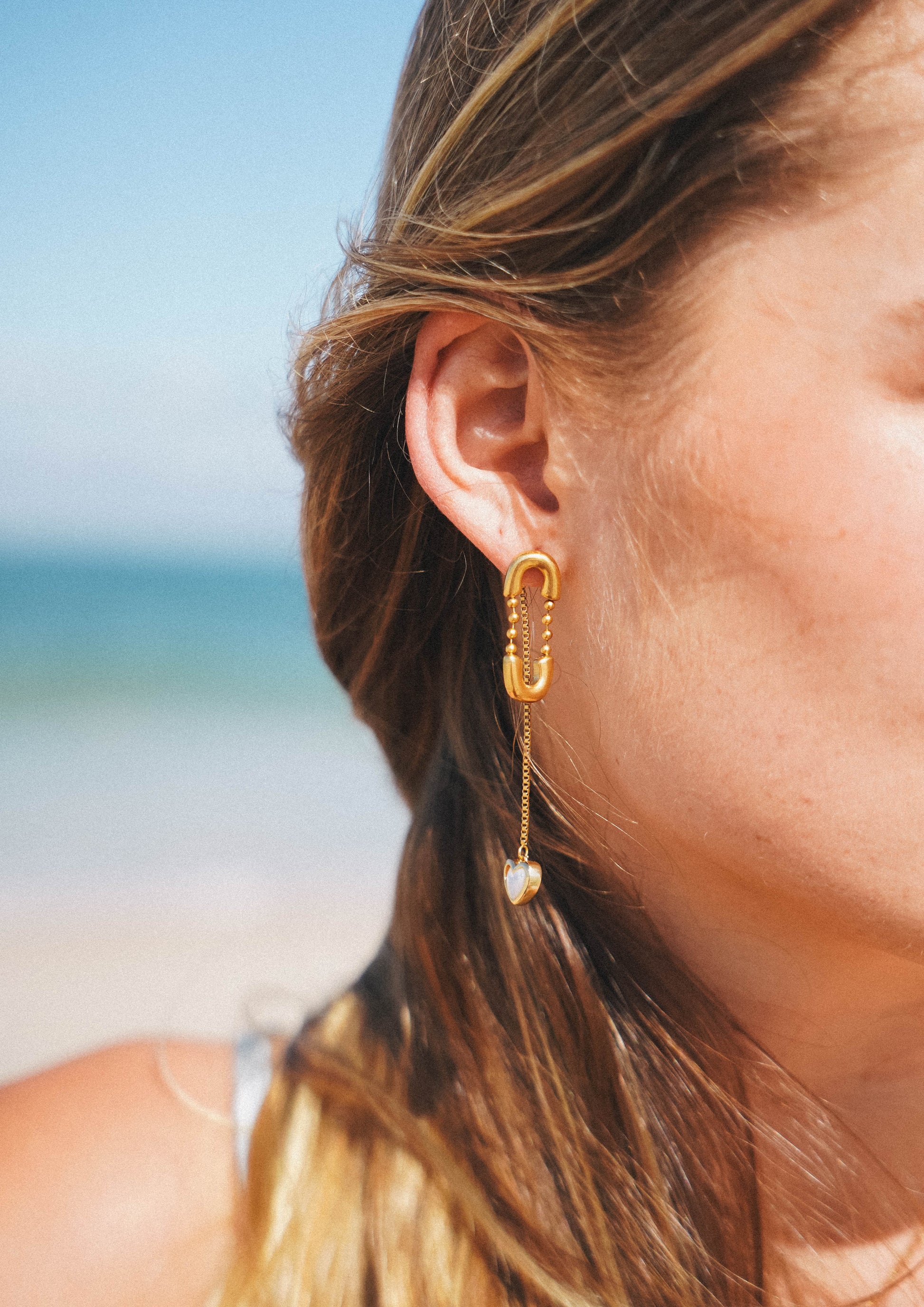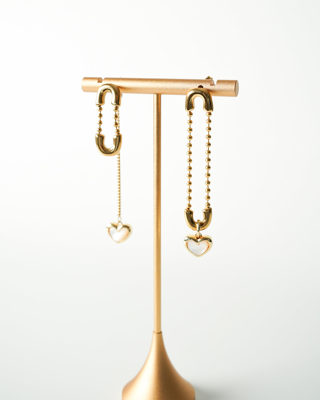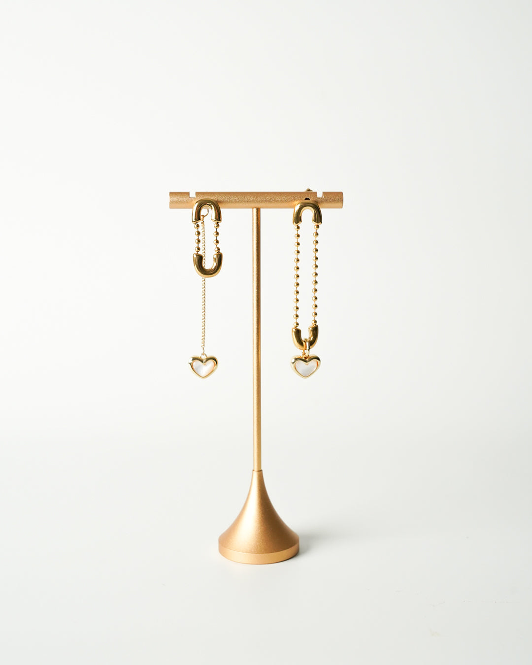 18k gold plated safety pin shaped odd pair earrings 6.6mm long