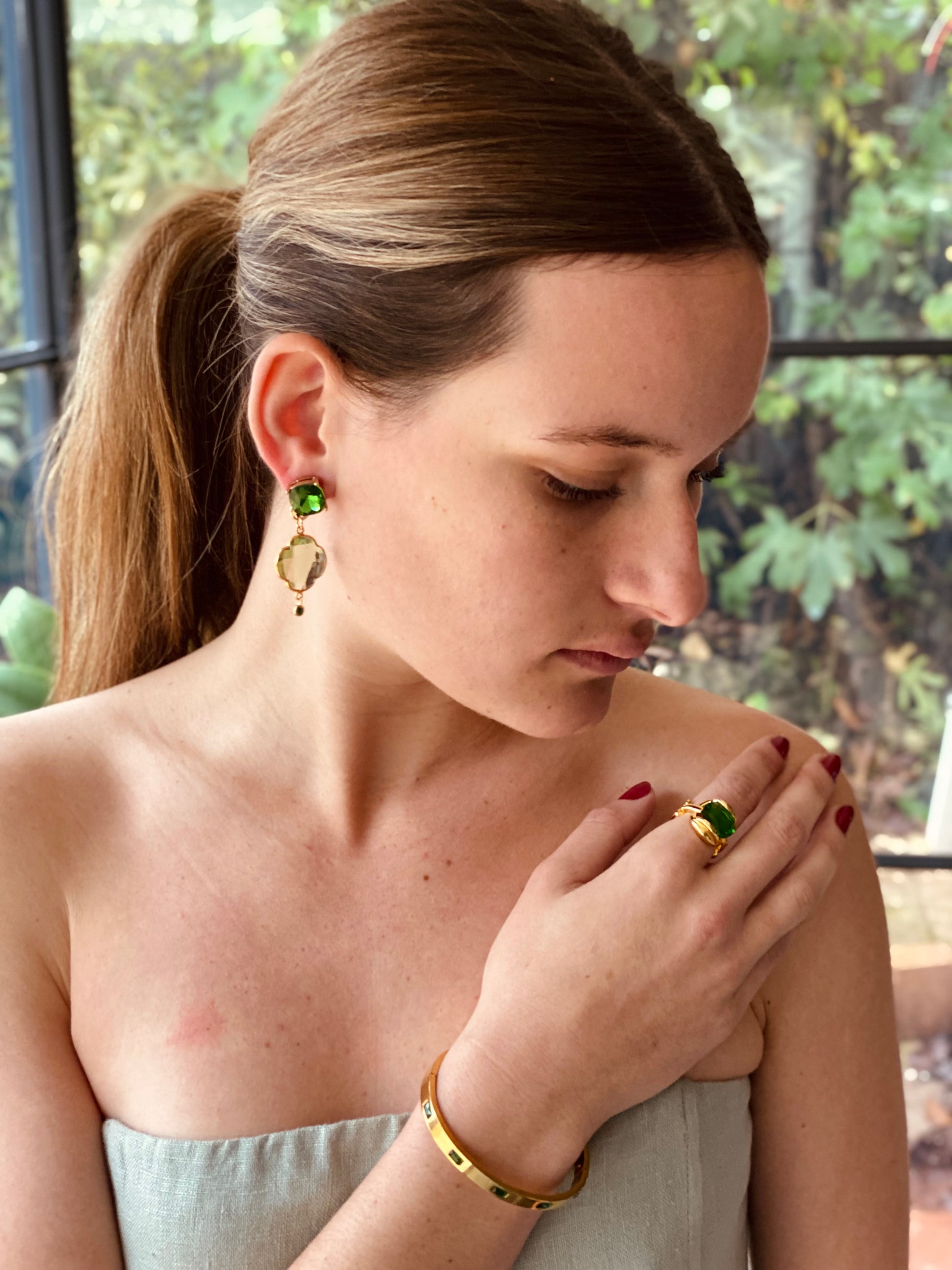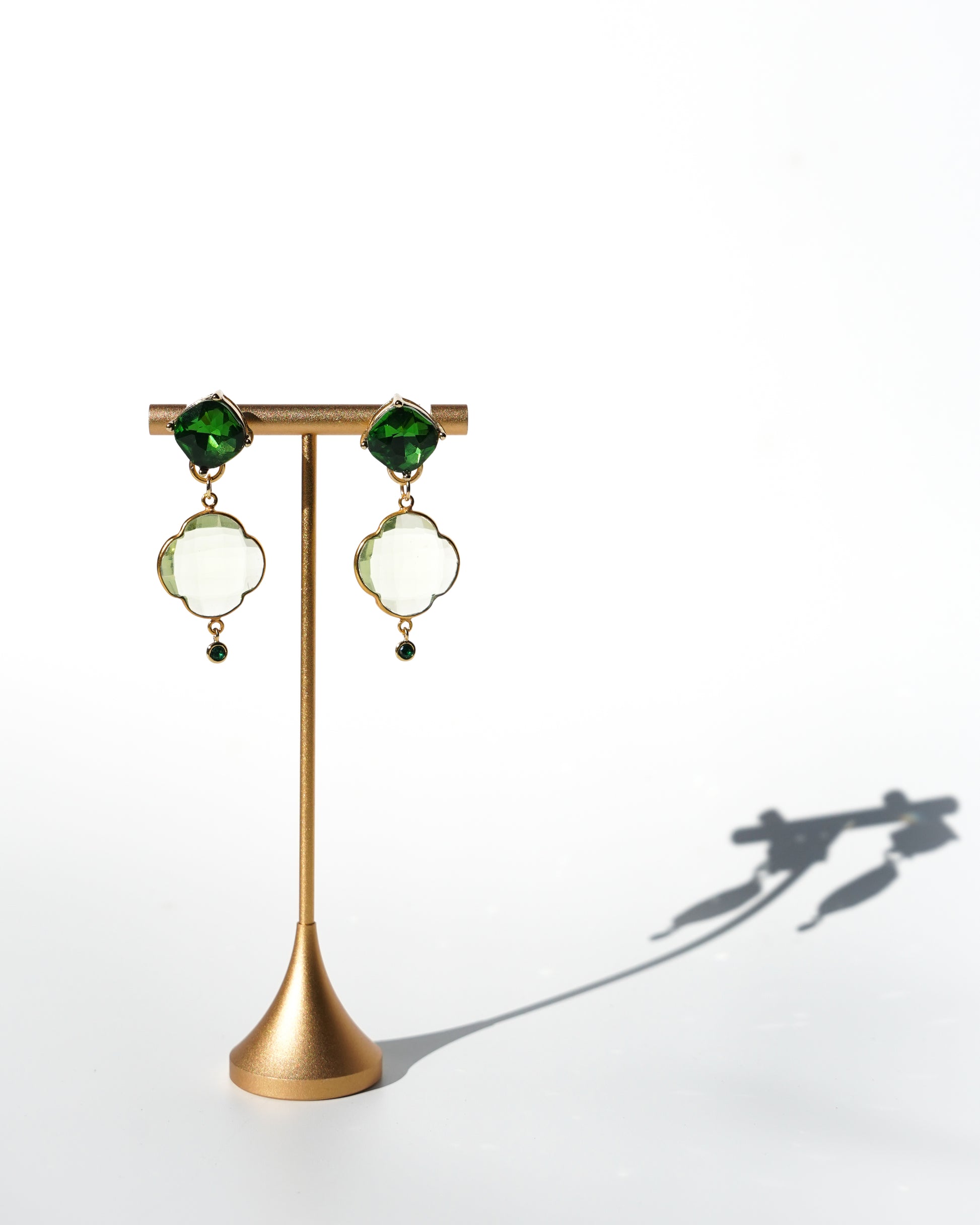 12mm Square emerald colour post with pale green 27mm x 20mm clover and green bead.