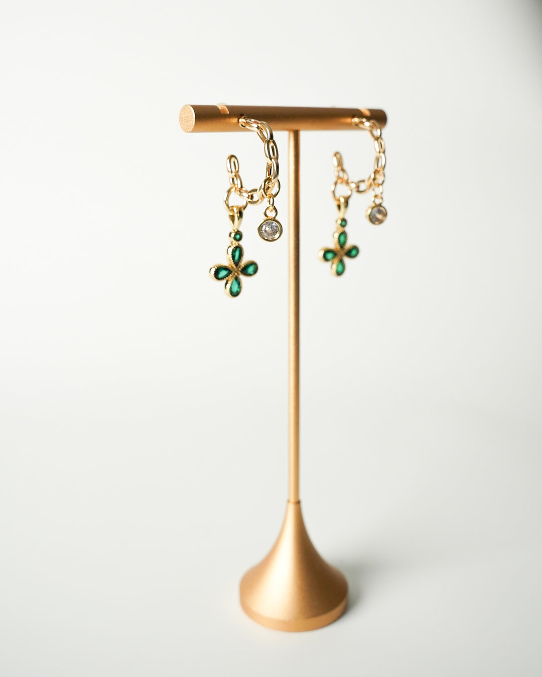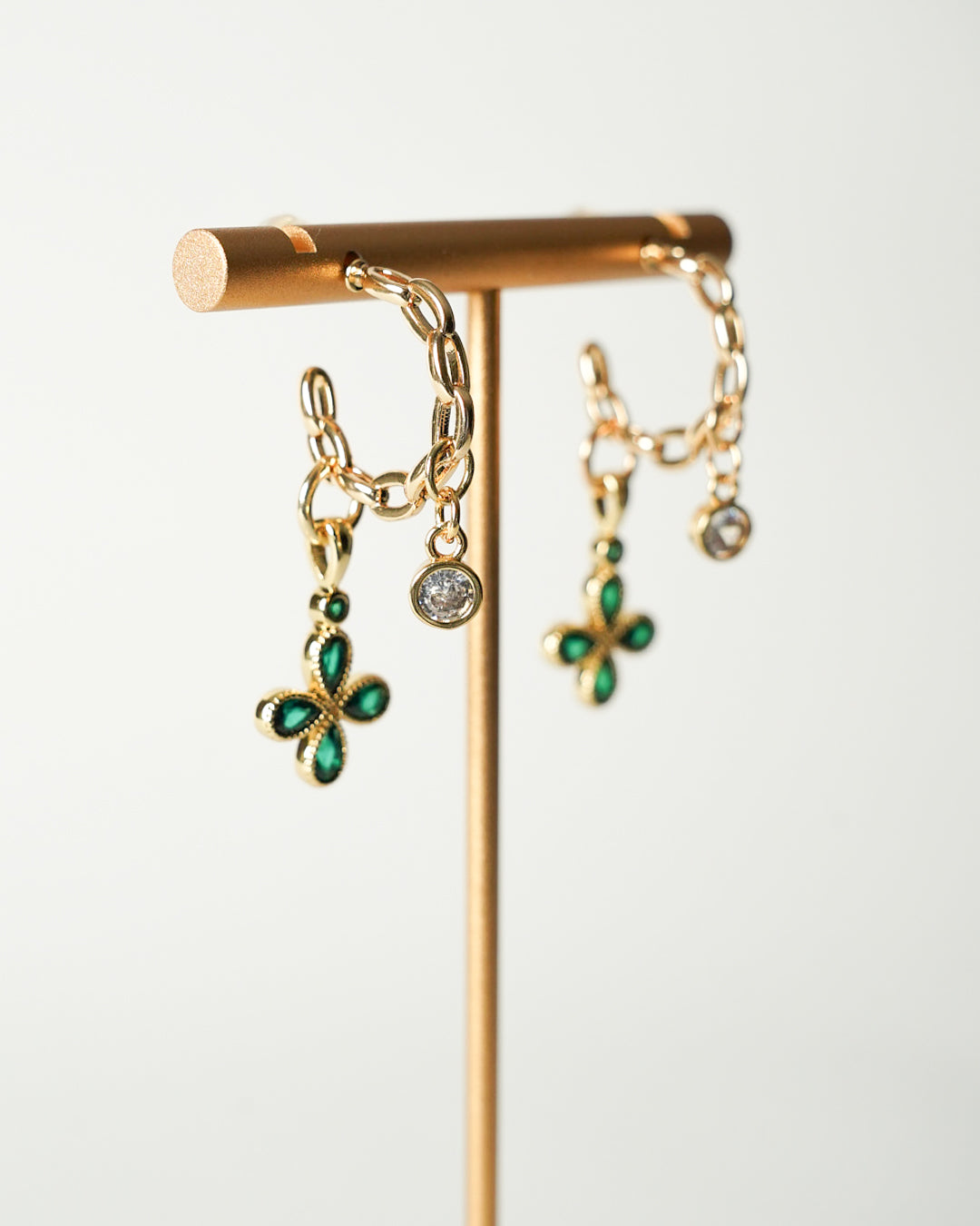 18k gold plated chain hoops with green 21.5mm cubic zirconia cross and diamanté drop